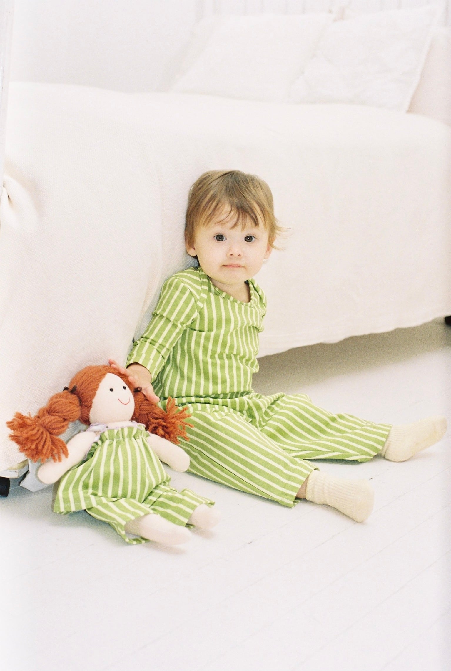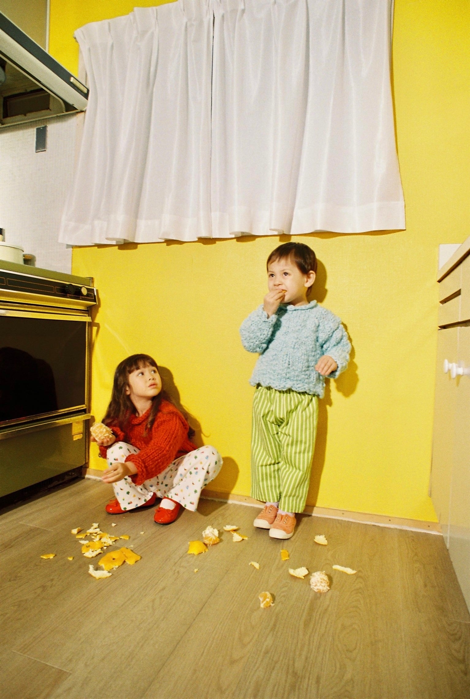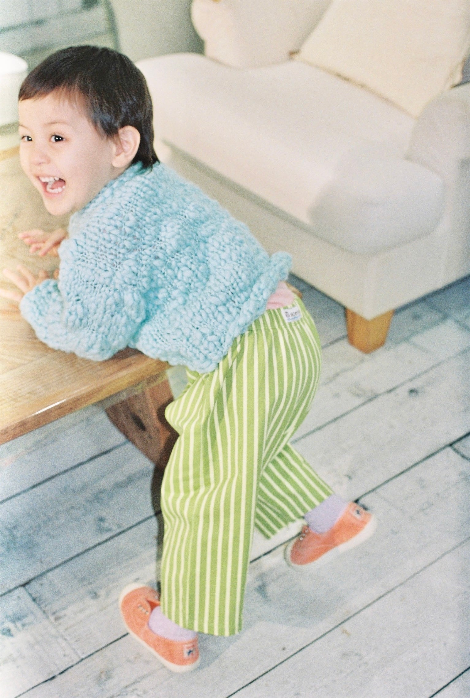 ベビーパンツはキッズのデザインと違い、歩き始めや走り回ることを考えて裾が邪魔にならぬようテーパード仕様にしました。